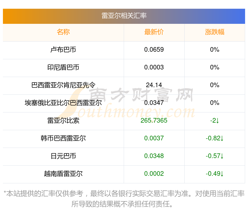 南方財(cái)富網(wǎng)為您提供雷亞爾換成盧布匯率最新價(jià)格詳情。