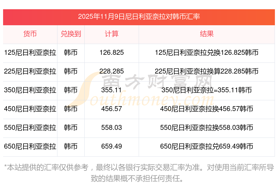 尼日利亞奈拉對(duì)韓幣匯率計(jì)算?