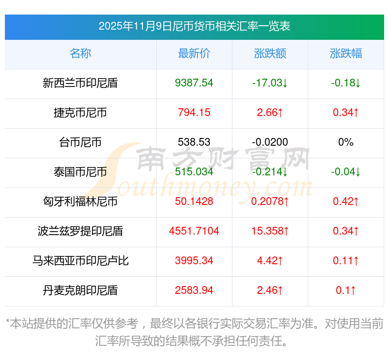 2025年11月9日尼幣相關(guān)匯率查詢(xún)