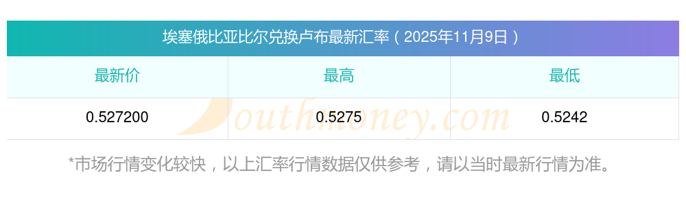 今日埃塞俄比亞比爾匯價:2025年11月9日23埃塞俄比亞比爾兌盧布匯價一覽表