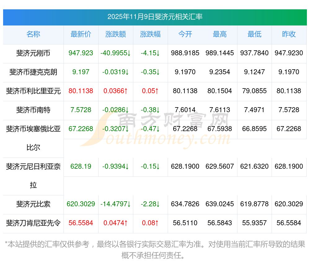2025年11月9日斐濟(jì)元相關(guān)匯率查詢