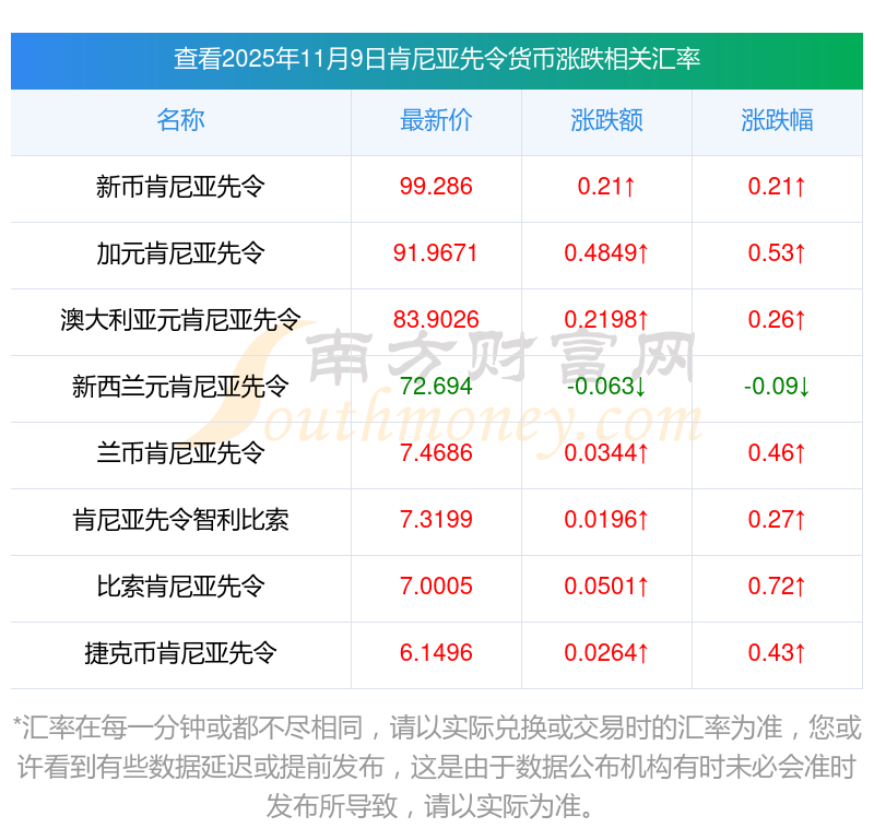2025年11月9日肯尼亞先令相關(guān)匯率查詢