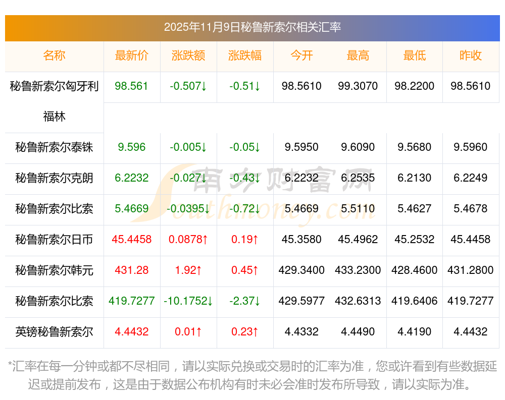 2025年11月9日秘魯新索爾相關(guān)匯率查詢