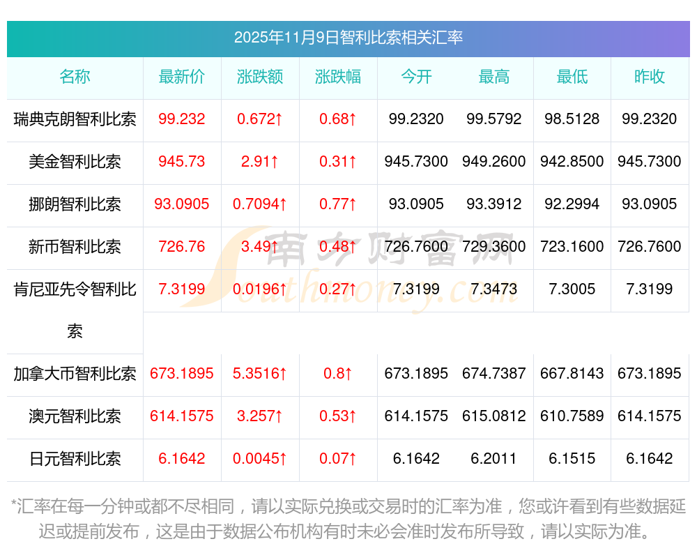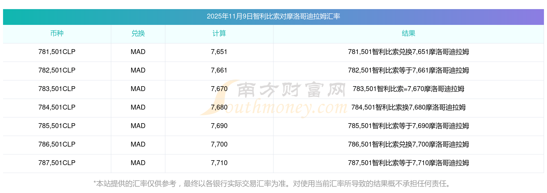 匯率調(diào)整嗎?2025年11月9日今天智利比索與摩洛哥迪拉姆匯率計算表