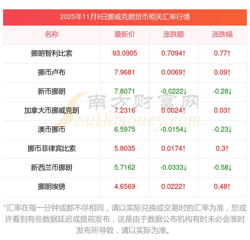 2025年11月9日挪威克朗相關(guān)匯率查詢