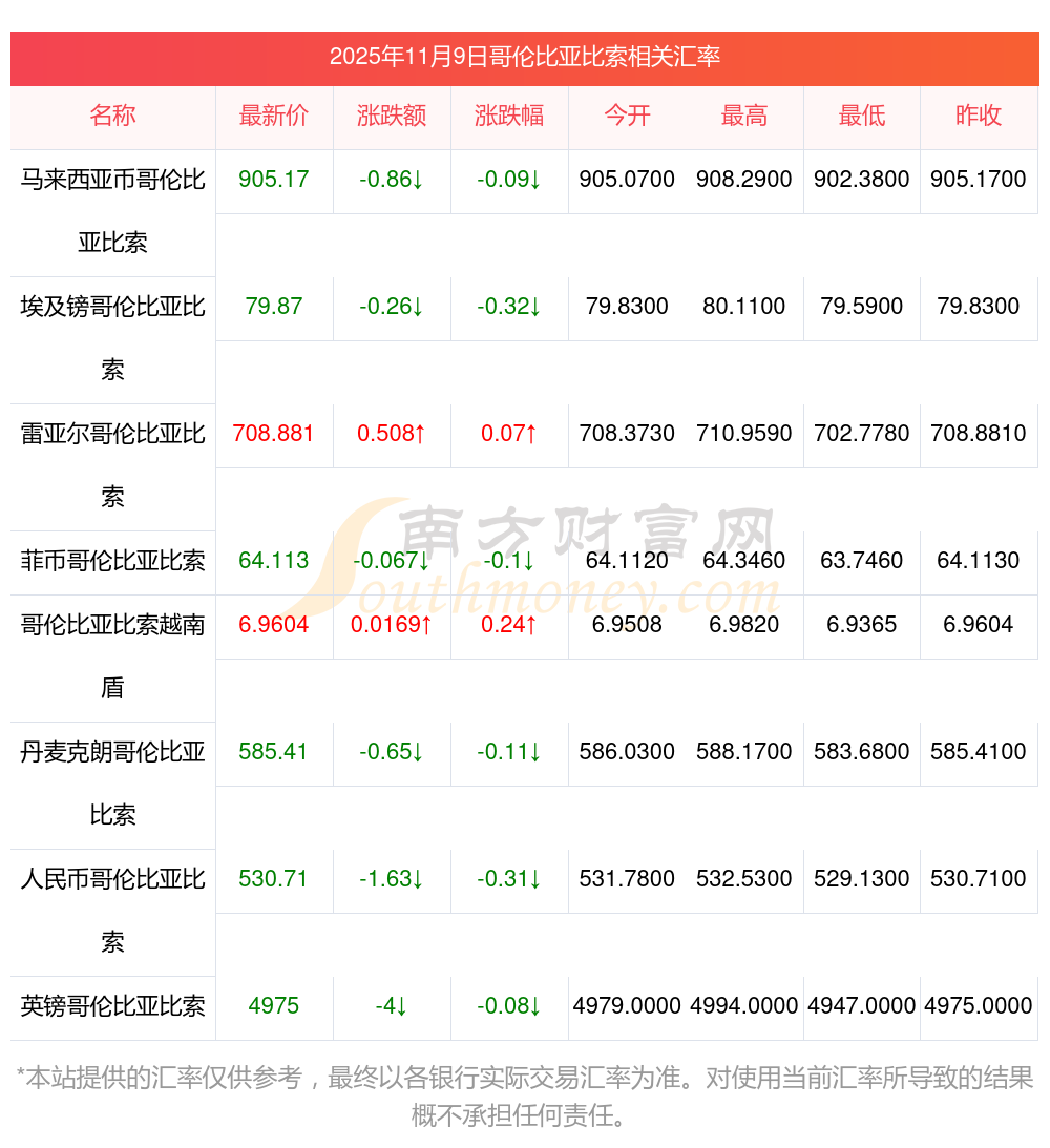 今日哥倫比亞比索對(duì)新臺(tái)幣計(jì)算匯率查詢 哥倫比亞比索對(duì)新臺(tái)幣匯率多少2025/11/09