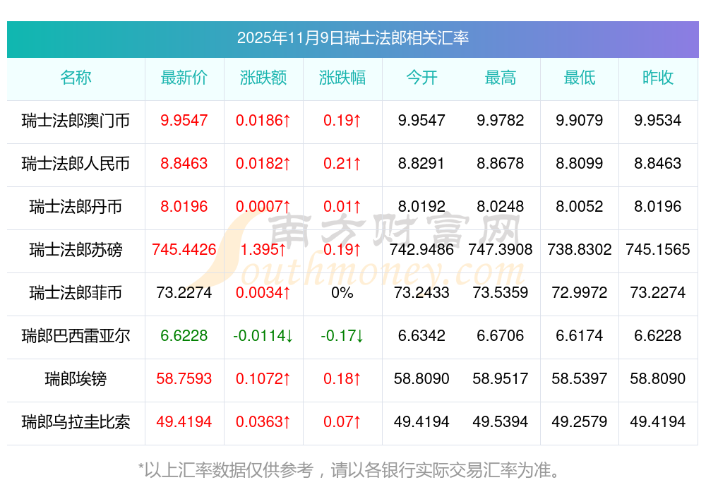 瑞士法郎今天開(kāi)價(jià)多少?瑞士法郎對(duì)歐元匯率多少?11-9