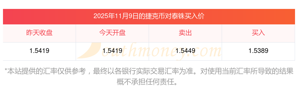 最新2025年11月9日24捷克幣兌泰銖匯價(jià)是多少?