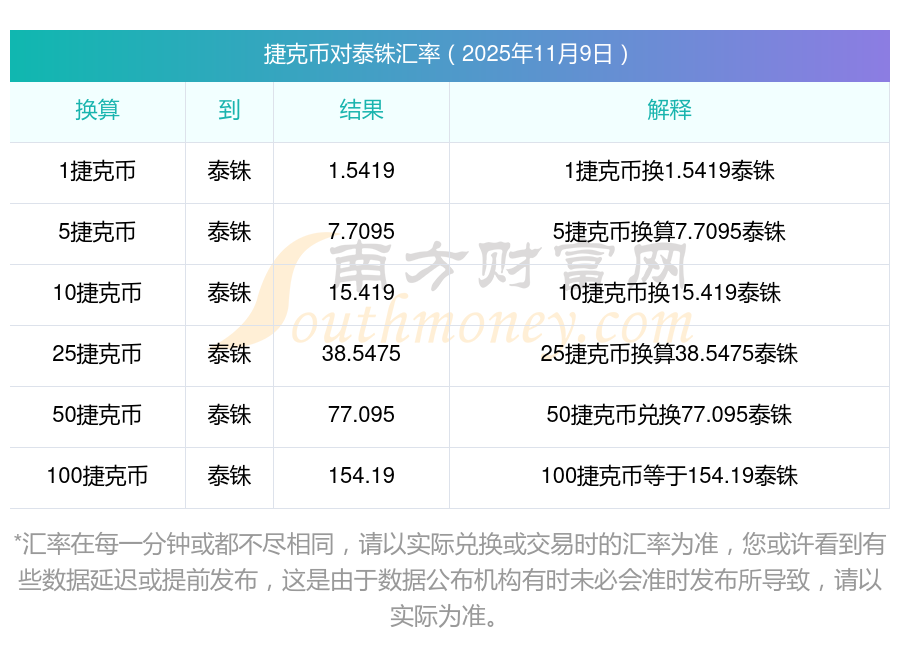今日捷克幣匯價(jià):2025年11月9日24捷克幣兌泰銖匯價(jià)一覽表