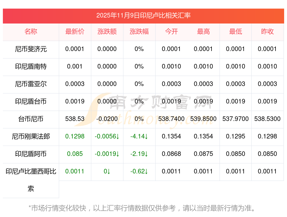 2025年11月9日印尼盧比相關(guān)匯率查詢