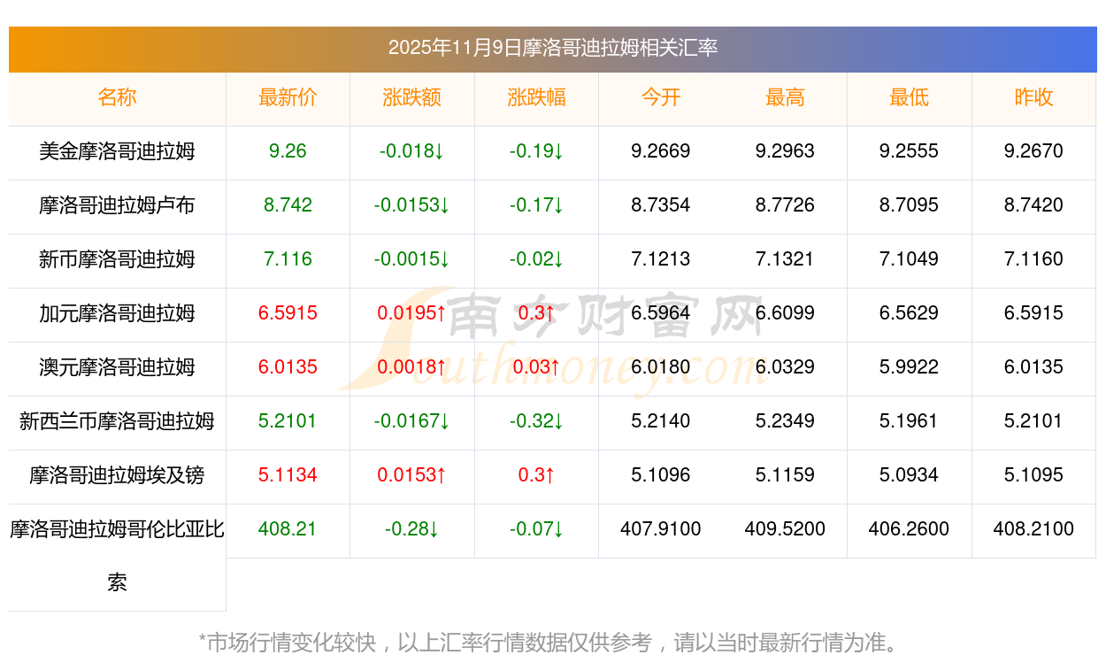 2025年11月9日摩洛哥迪拉姆相關(guān)匯率查詢