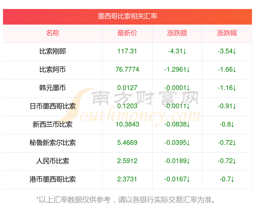 2025年11月9日墨西哥比索相關(guān)匯率查詢