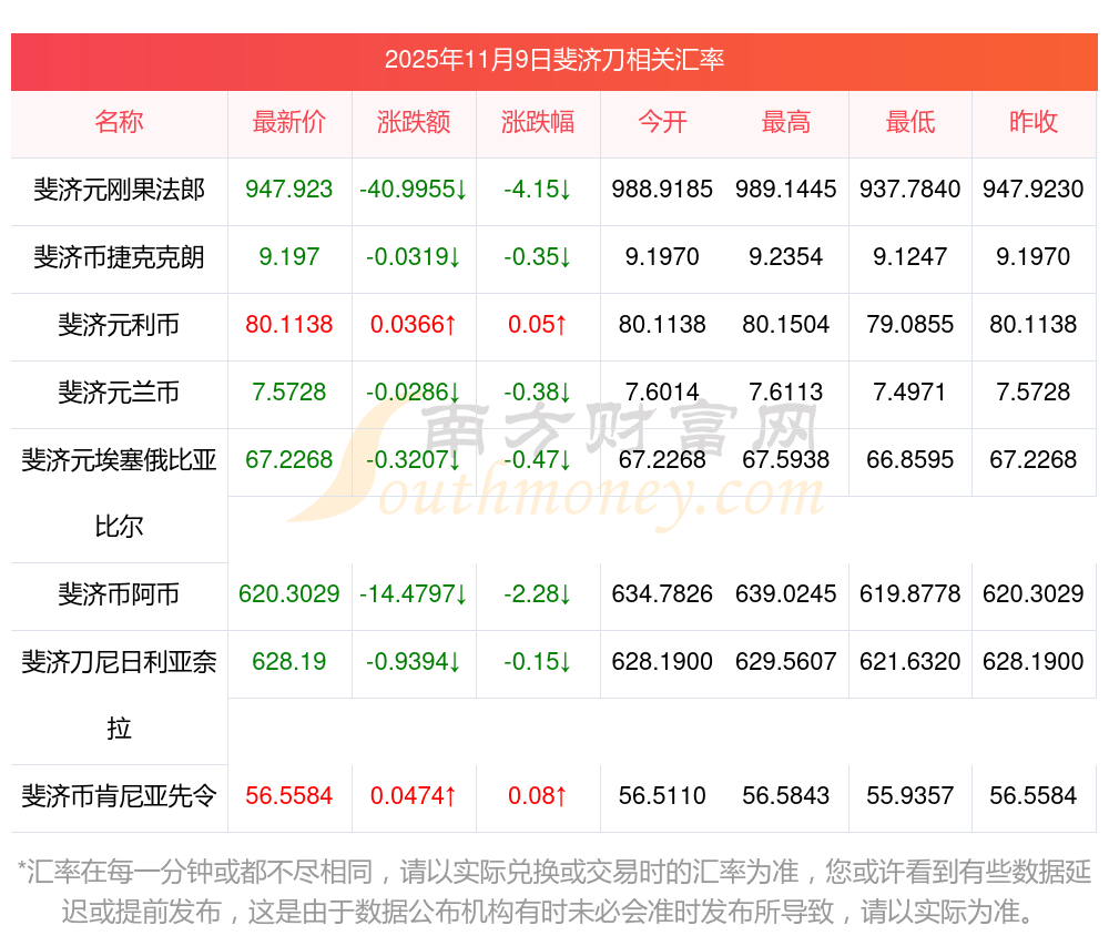 2025年11月9日斐濟(jì)刀相關(guān)匯率查詢