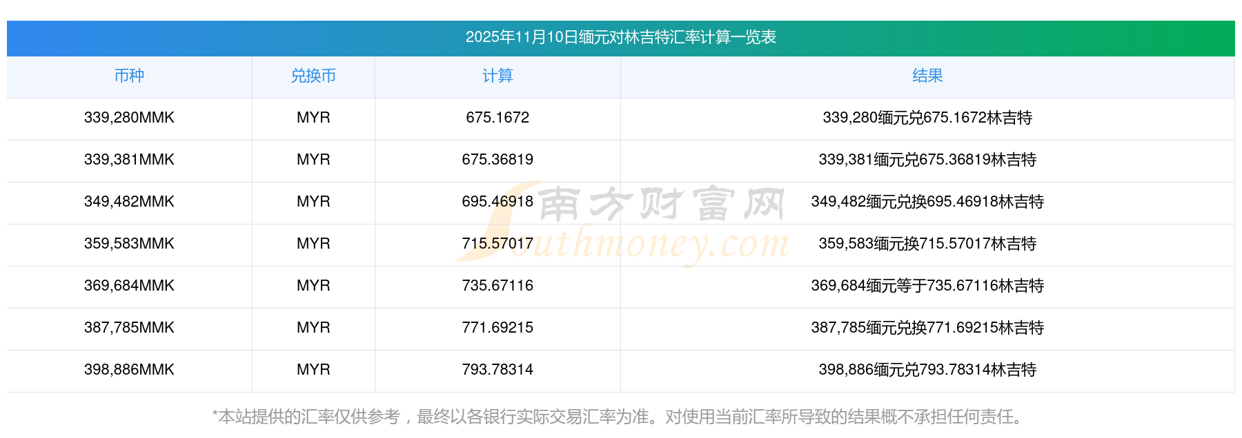 不同貨幣折算:現(xiàn)在1019緬元對林吉特匯率多少?11月10日