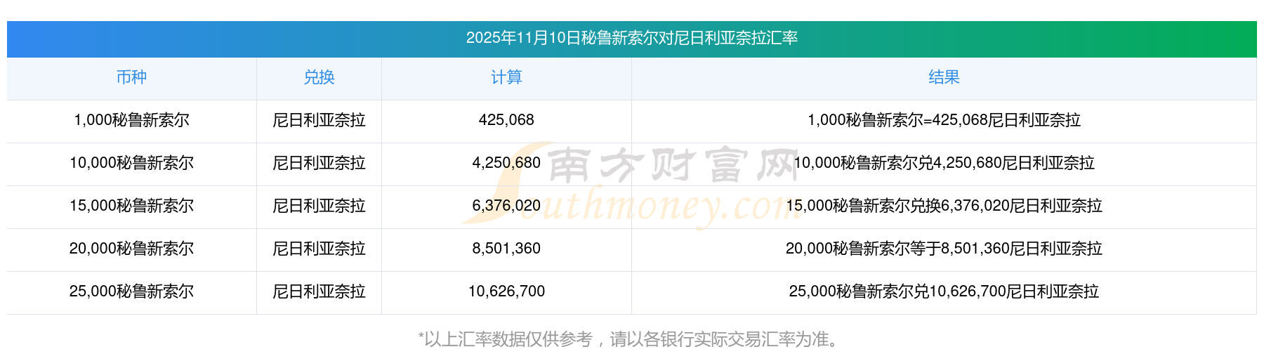 匯率新調(diào)整 今天13秘魯新索爾兌換尼日利亞奈拉匯率行情? 2025年11月10日