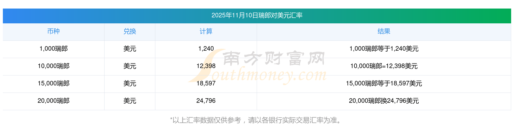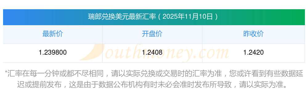 南方財(cái)富網(wǎng)為您提供瑞郎對(duì)美元匯率最新價(jià)格詳情。