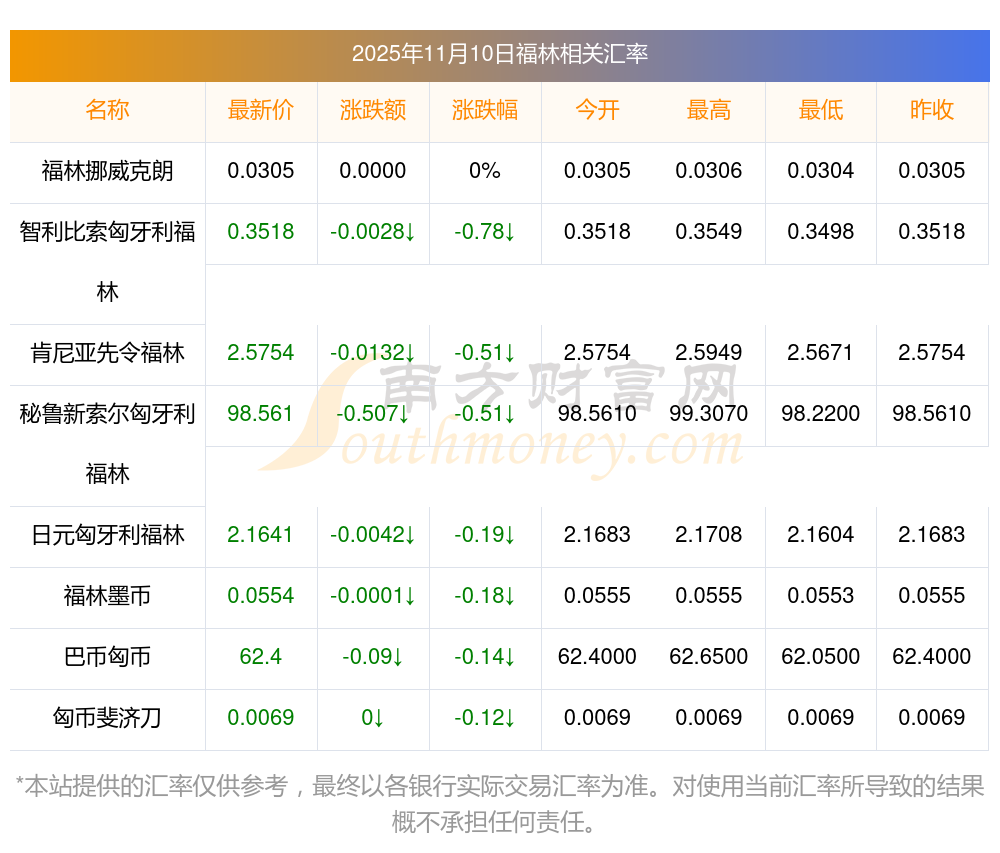南方財(cái)富網(wǎng)為您提供福林對(duì)南特匯率最新價(jià)格詳情。