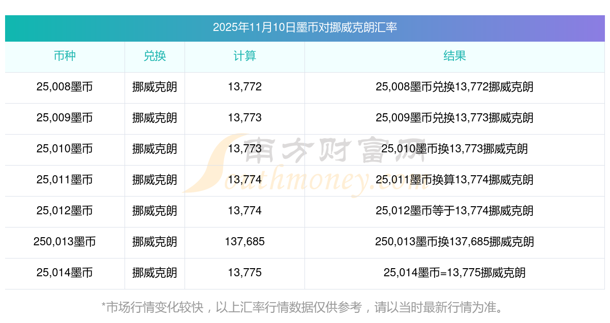 墨幣兌挪威克朗匯率今日匯率查詢11-10