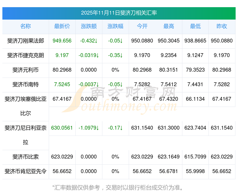 2025年11月11日斐濟(jì)刀相關(guān)匯率查詢