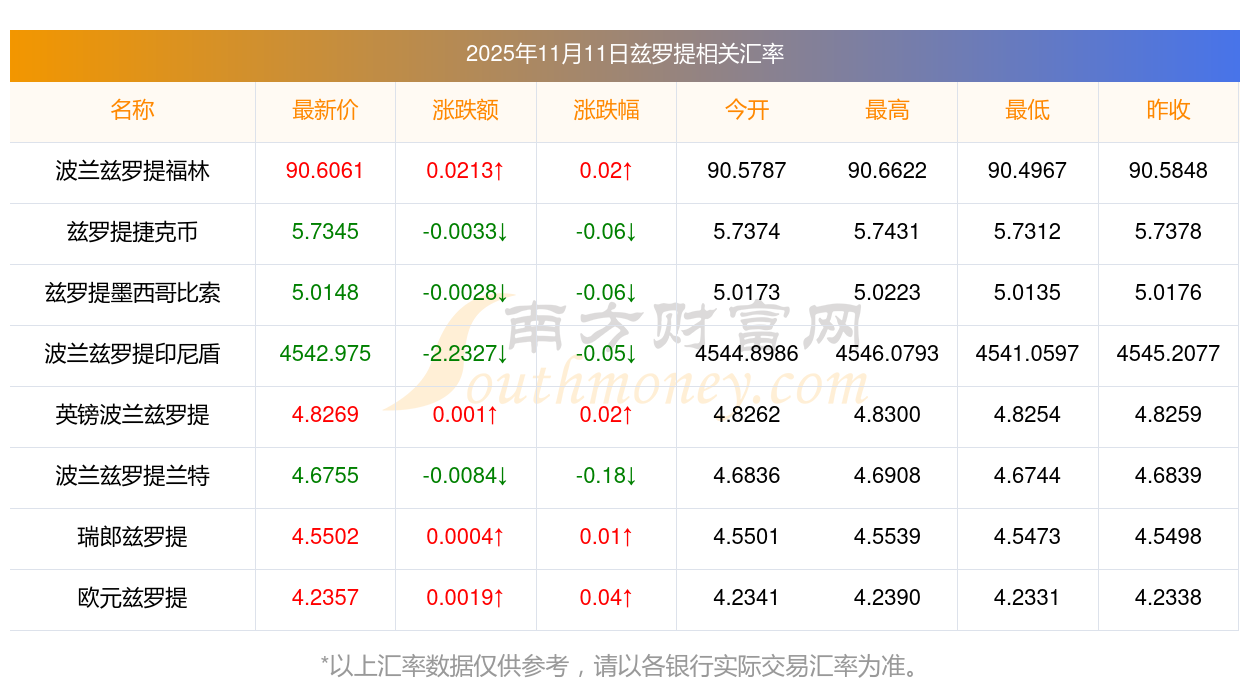 2025年11月11日茲羅提相關(guān)匯率查詢