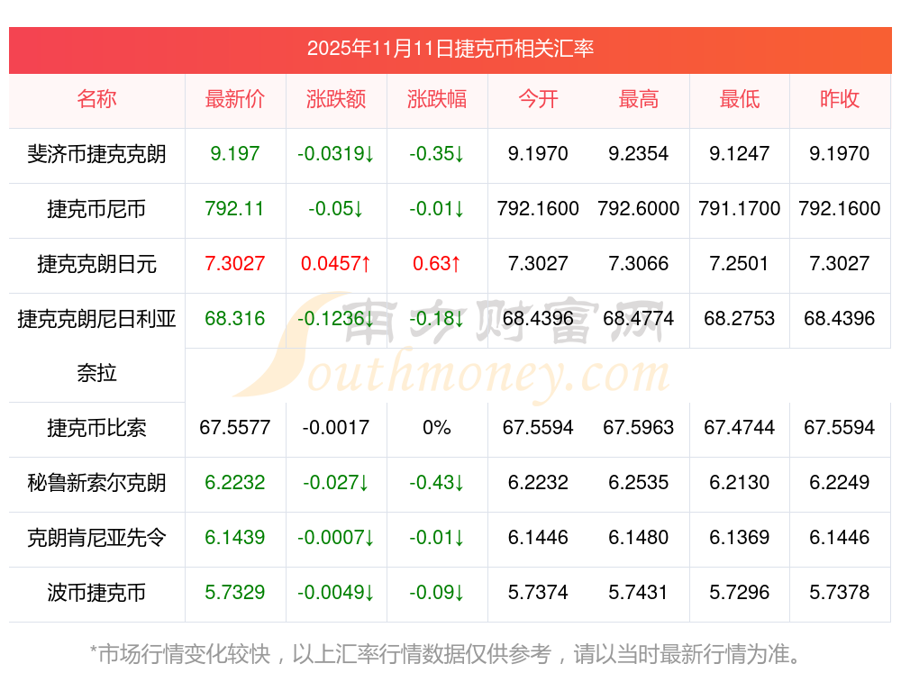 2025年11月11日捷克幣相關(guān)匯率查詢