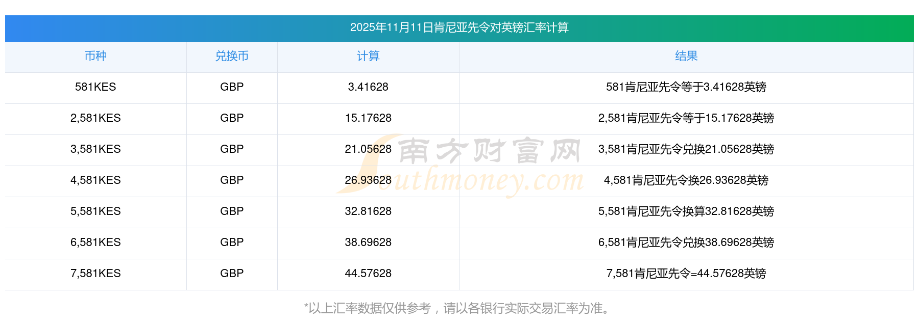 今天匯率最新消息 6.5萬(wàn)肯尼亞先令對(duì)換英鎊匯率一覽 2025/11/11