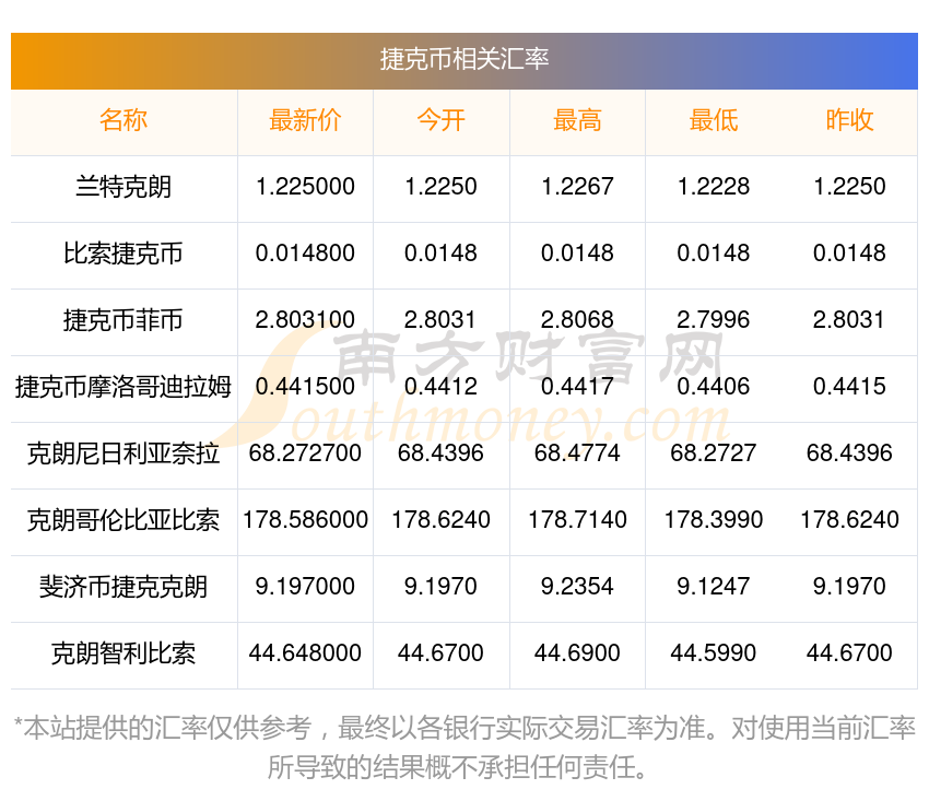 2025年11月11日捷克幣相關(guān)匯率查詢