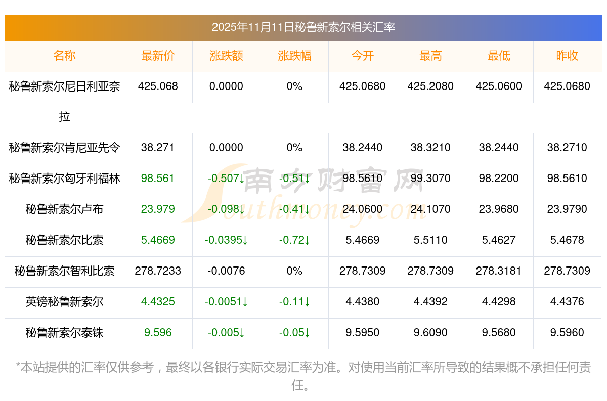 2025年11月11日秘魯新索爾相關匯率查詢