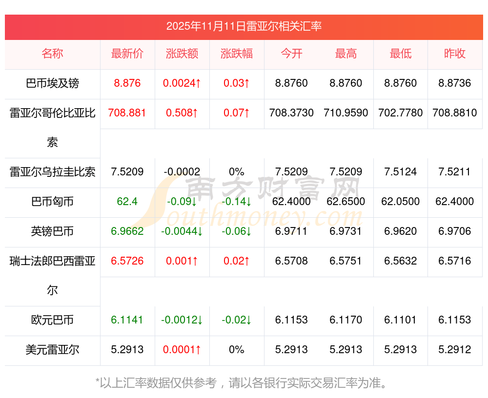 2025年11月11日雷亞爾相關(guān)匯率查詢(xún)