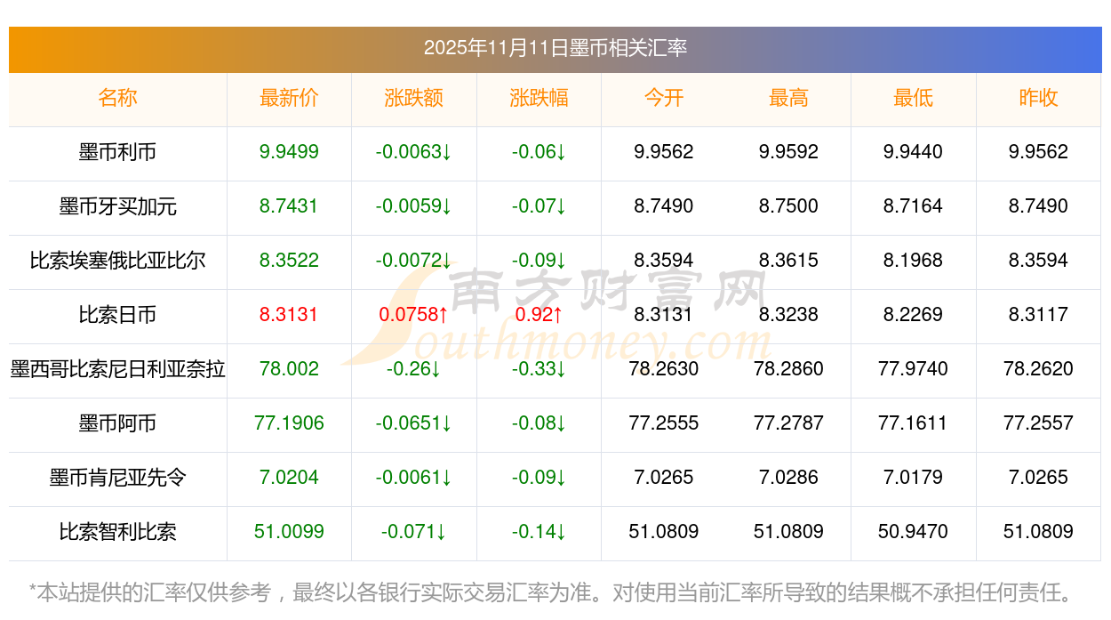 11-11 26墨幣兌換成利幣匯率_匯率查詢方法