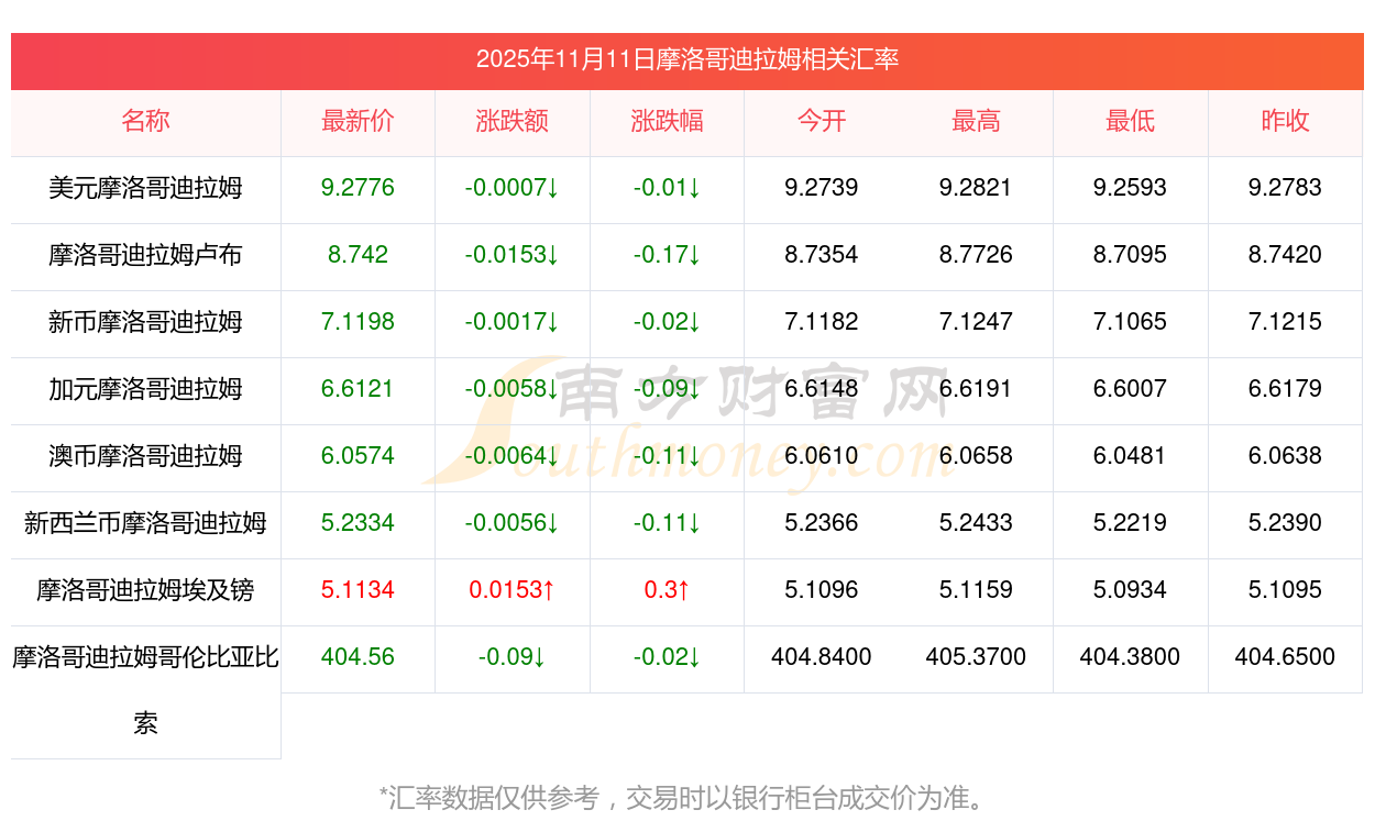 2025年11月11日摩洛哥迪拉姆相關(guān)匯率查詢