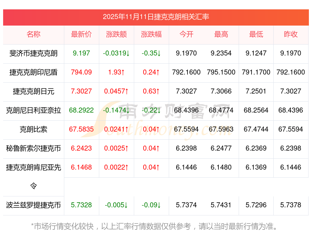 2025年11月11日捷克克朗相關(guān)匯率查詢