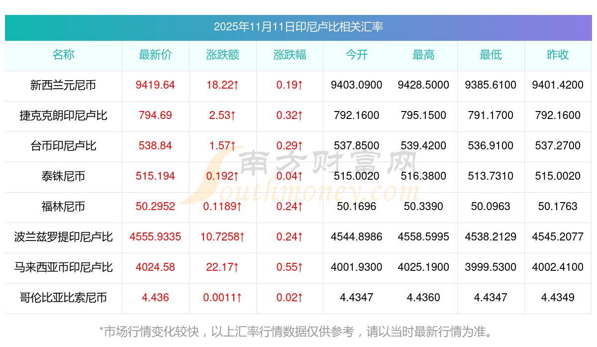 2025年11月11日印尼盧比相關(guān)匯率查詢