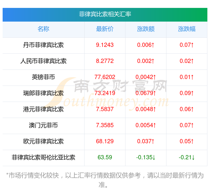 南方財(cái)富網(wǎng)為您提供菲律賓比索對(duì)尼日利亞奈拉匯率最新價(jià)格詳情。