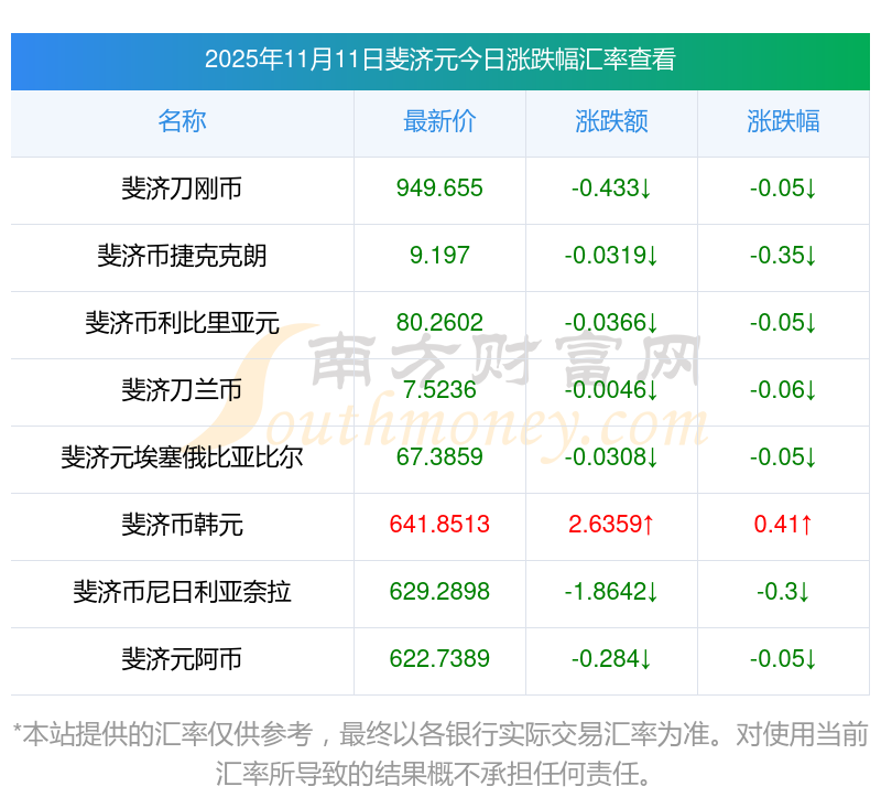2025年11月11日斐濟(jì)元相關(guān)匯率查詢