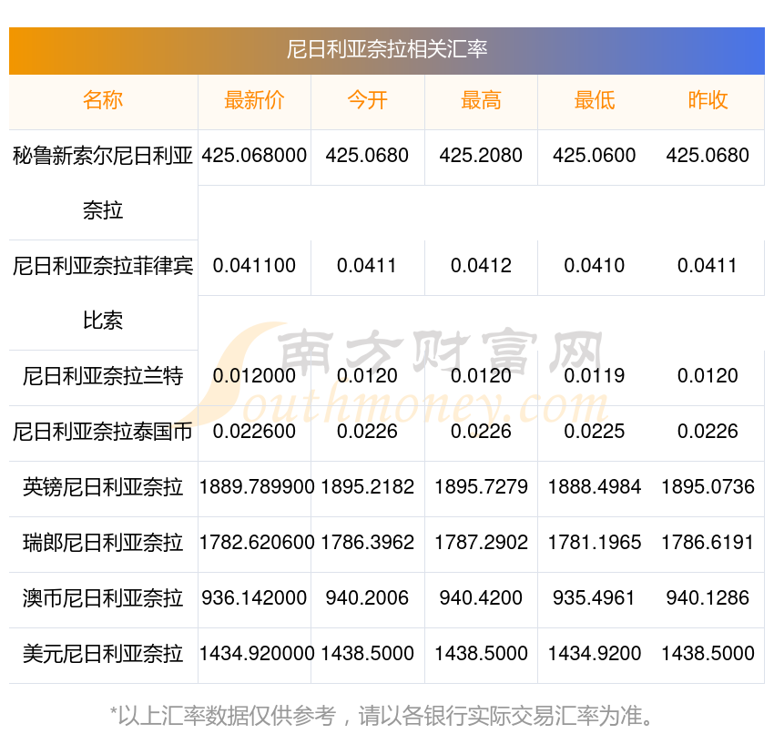 南方財富網為您提供尼日利亞奈拉對英鎊匯率最新價格詳情。