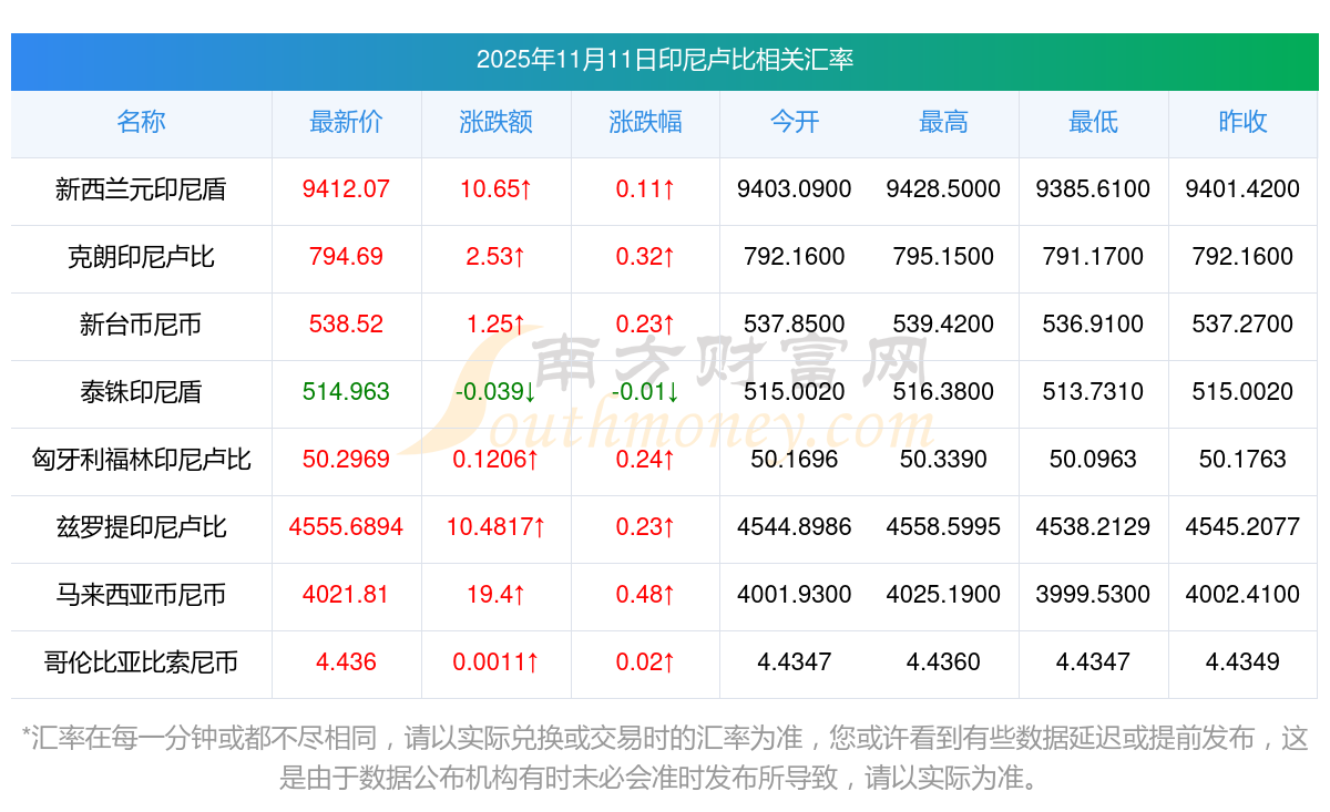 2025年11月11日印尼盧比相關(guān)匯率查詢