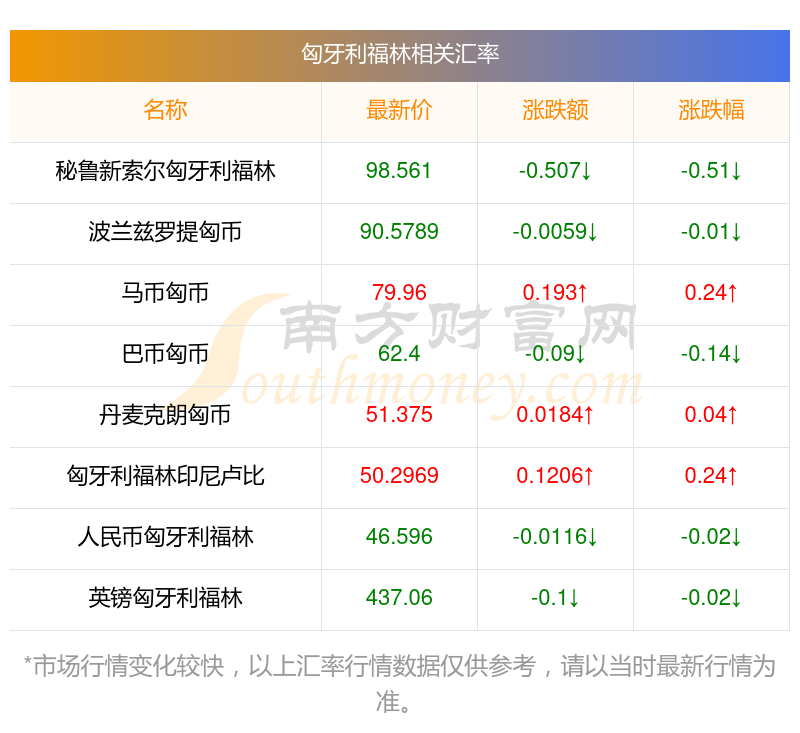南方財(cái)富網(wǎng)為您提供匈牙利福林對(duì)埃鎊匯率最新價(jià)格詳情。