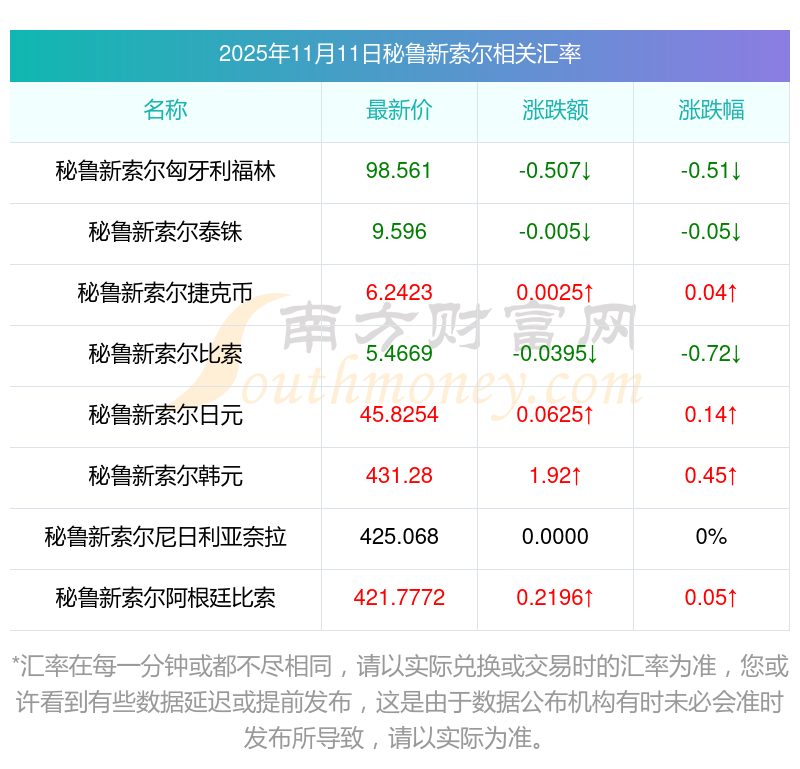 2025年11月11日秘魯新索爾相關(guān)匯率查詢