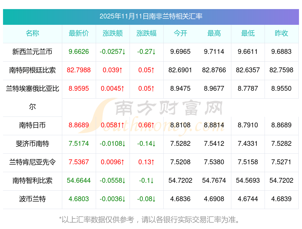 2025年11月11日南非蘭特相關(guān)匯率查詢