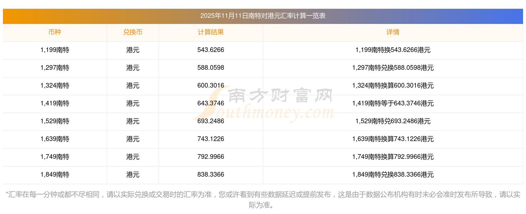 南特?fù)Q算港元計(jì)算器(2025年11月11日)