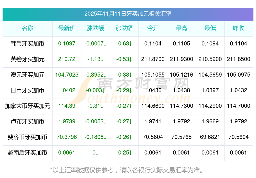 2025年11月11日牙買加元相關(guān)匯率查詢