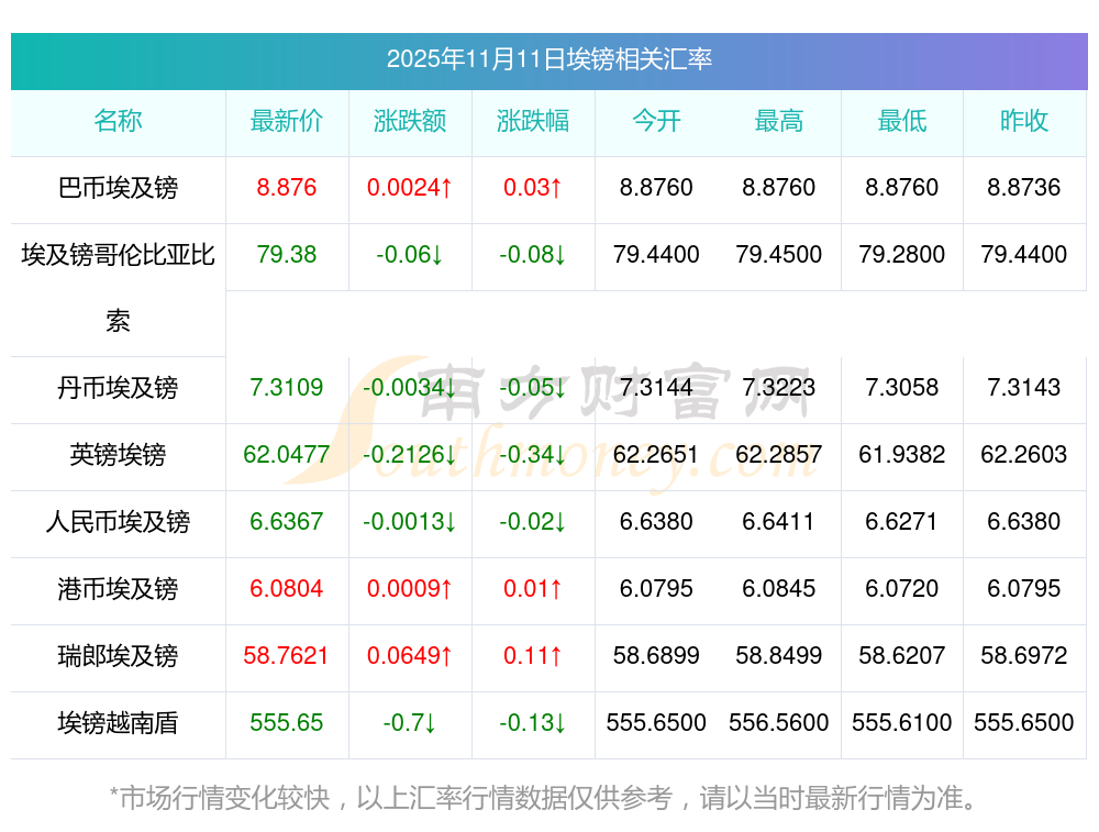 2025年11月11日埃鎊相關(guān)匯率查詢