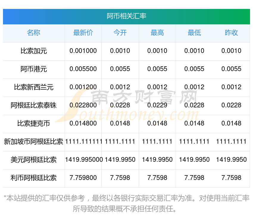 南方財(cái)富網(wǎng)為您提供阿幣對港元匯率最新價格詳情。