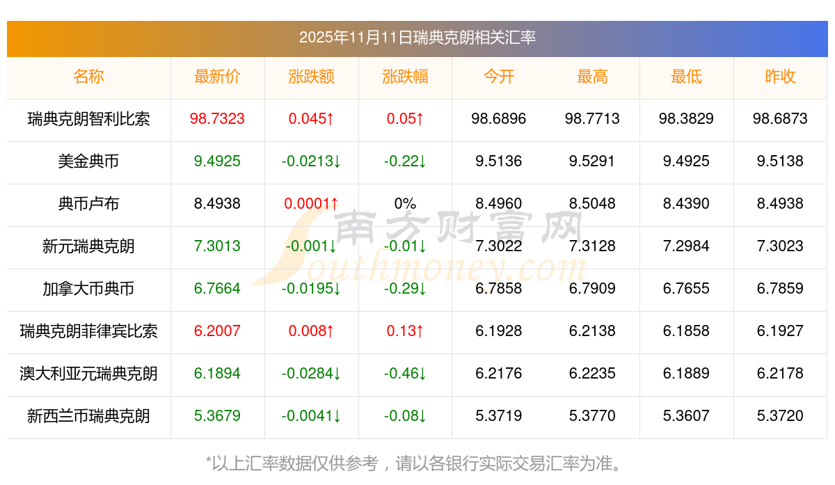 2025年11月11日瑞典克朗相關(guān)匯率查詢