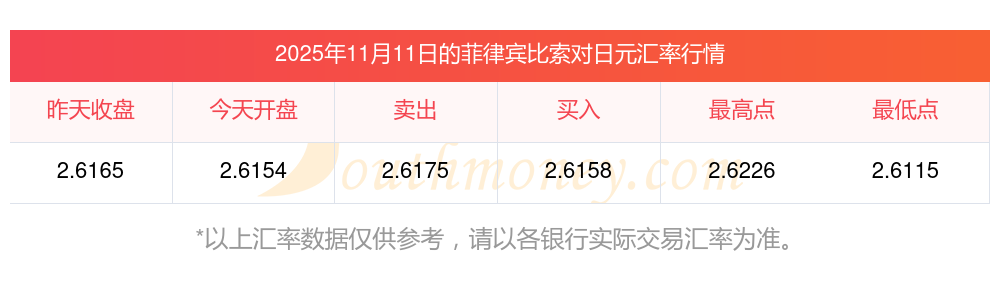 菲律賓比索與日元匯率轉(zhuǎn)換?11-1110比索對(duì)多少日元?