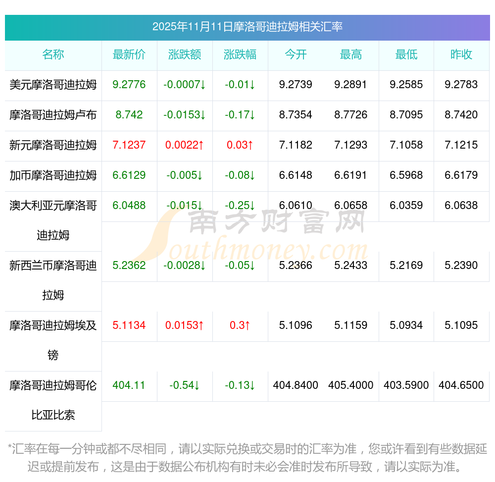 2025年11月11日摩洛哥迪拉姆相關(guān)匯率查詢(xún)
