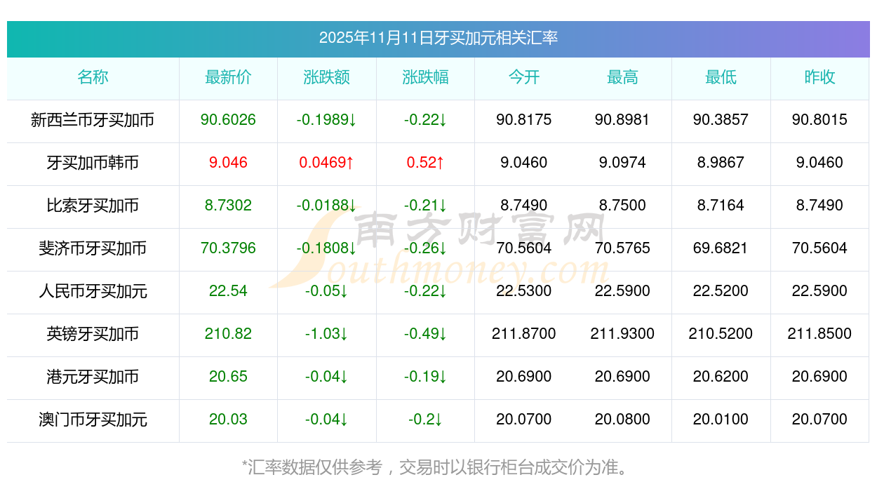 2025年11月11日牙買加元相關(guān)匯率查詢