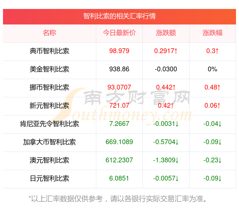 南方財(cái)富網(wǎng)為您提供智利比索對瑞典克朗匯率最新價格詳情。
