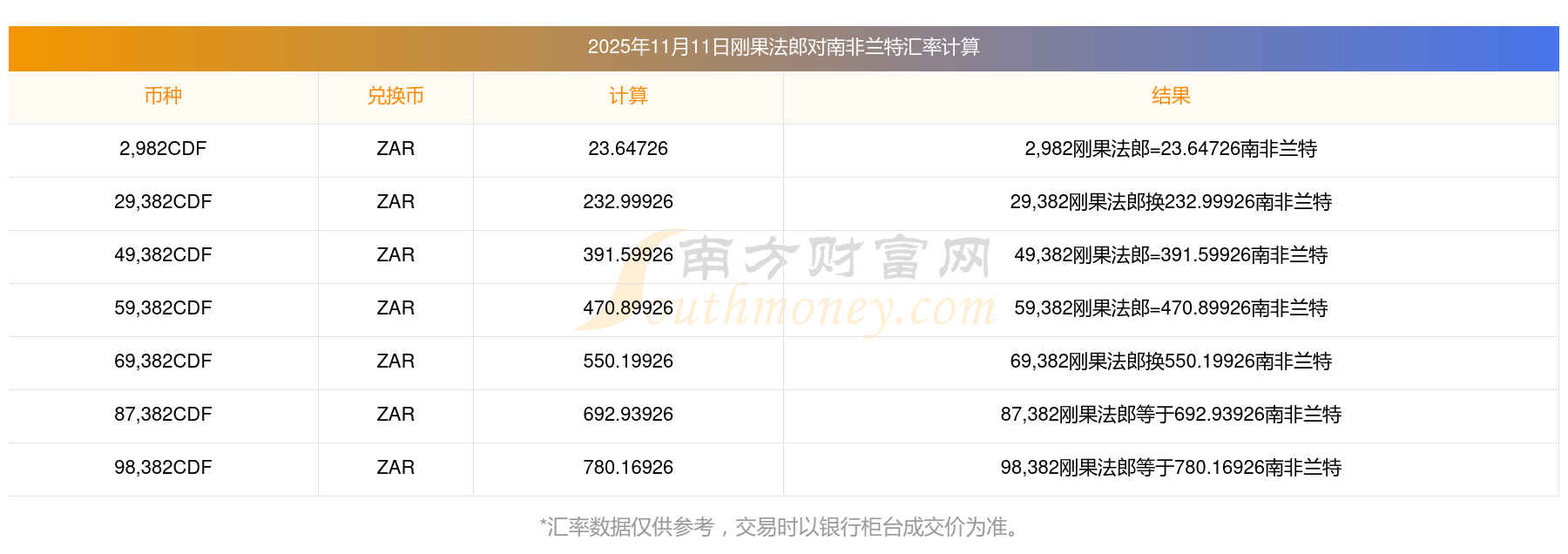 28剛果法郎兌換是多少南非蘭特2025年11月11日